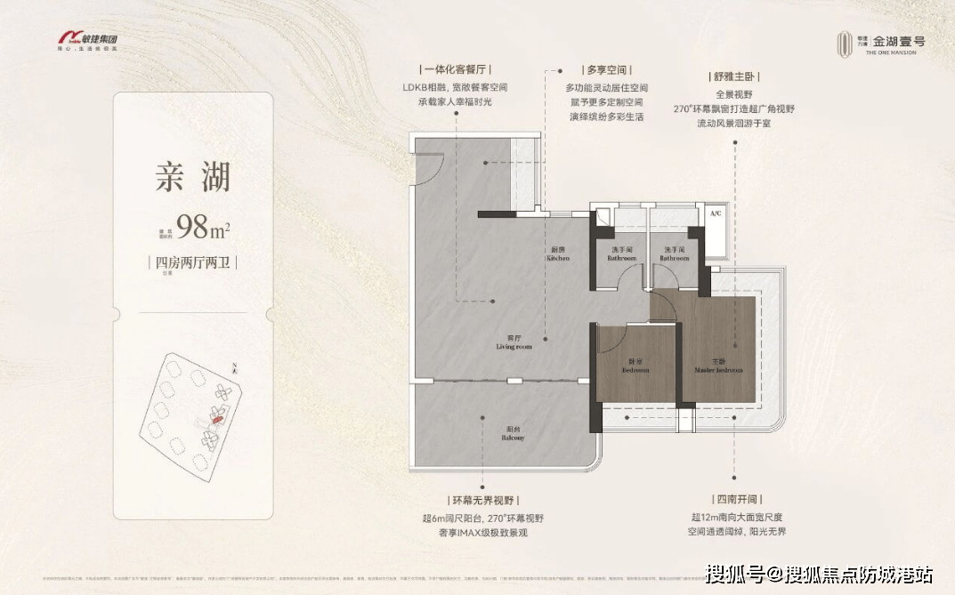 敏捷万博金湖壹号深谙现代家庭对空间实用性的极致追求,全系产品聚焦98–149㎡全南向四房户型,全部采用新规高拓展设计,得房率高达100%–110%,远超市场平均水平,真正做到“买三房得四房,买四房得五房”的空间魔法。
