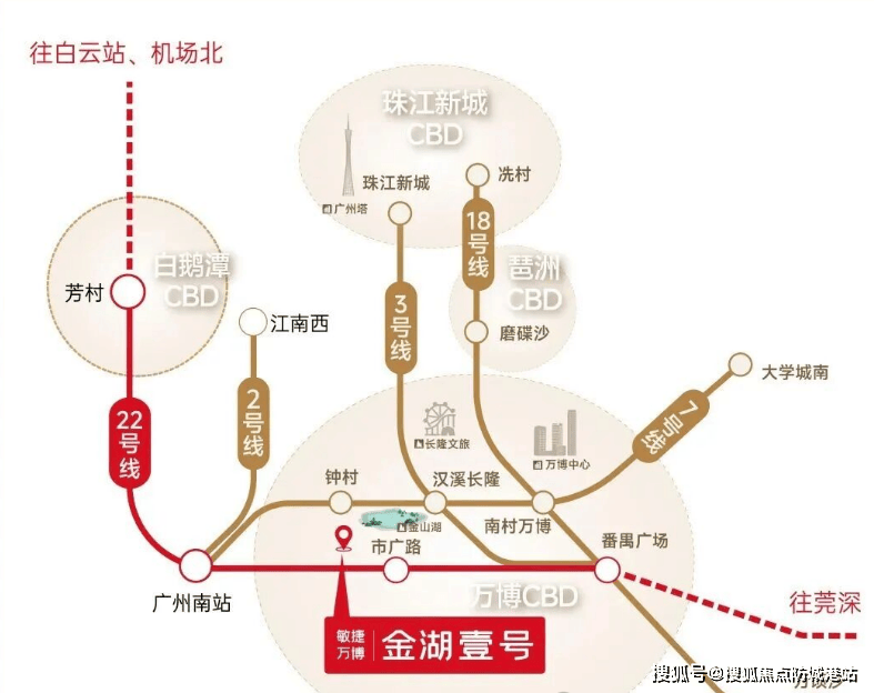 敏捷万博金湖壹号落子番禺钟村板块核心腹地,地处市广路与福翠路交汇处,精准卡位“万博CBD南门户”战略要地。这里既是成熟居住区,又是未来城市发展的重点增长极。